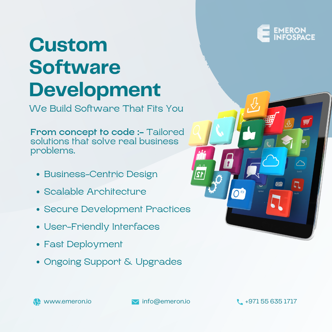 Custom Software in the UAE – Why Emeron Infospace Builds It Smarter البرمجيات المخصصة في الإمارات – لماذا إيميرون إنفوسبيس تبنيها بطريقة أذكى